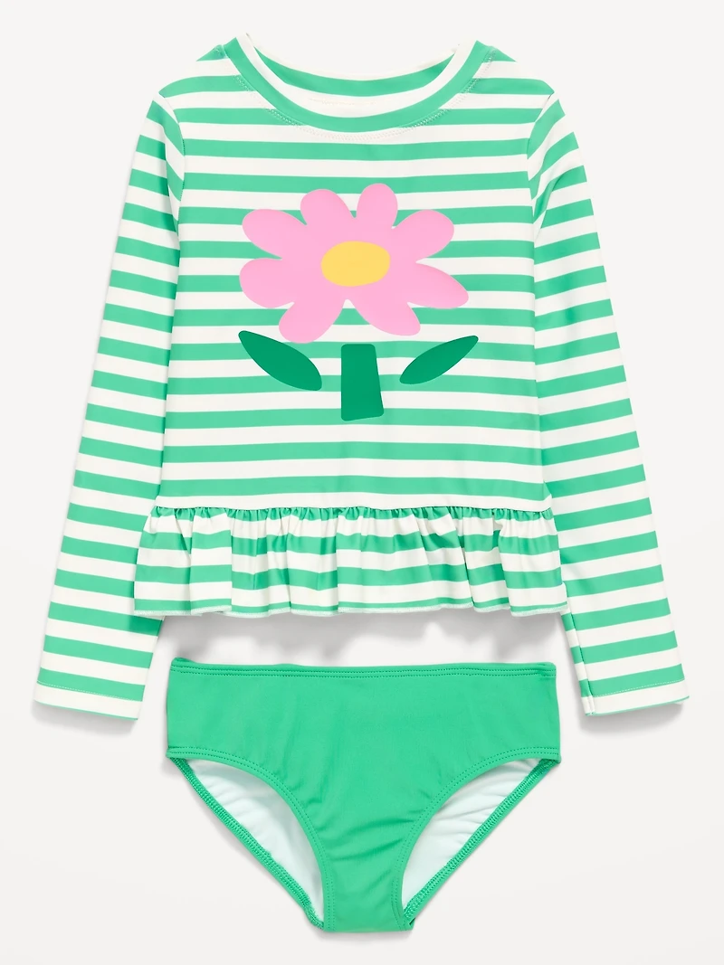 Printed Long-Sleeve Rashguard Swim Top Set for Toddler Girls