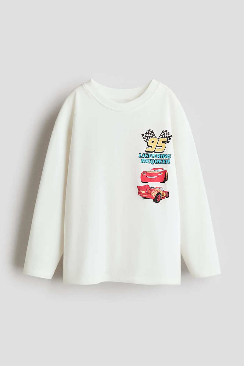 Loose-fit, long-sleeved T-shirt in soft jersey with printed motif at front and back. Ribbed round neck and dropped shoulders.