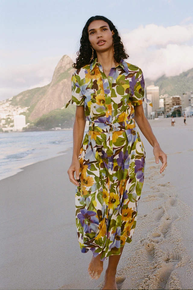 Sleeveless Fit-and-Flare Poplin Midi Dress with Smocked Top