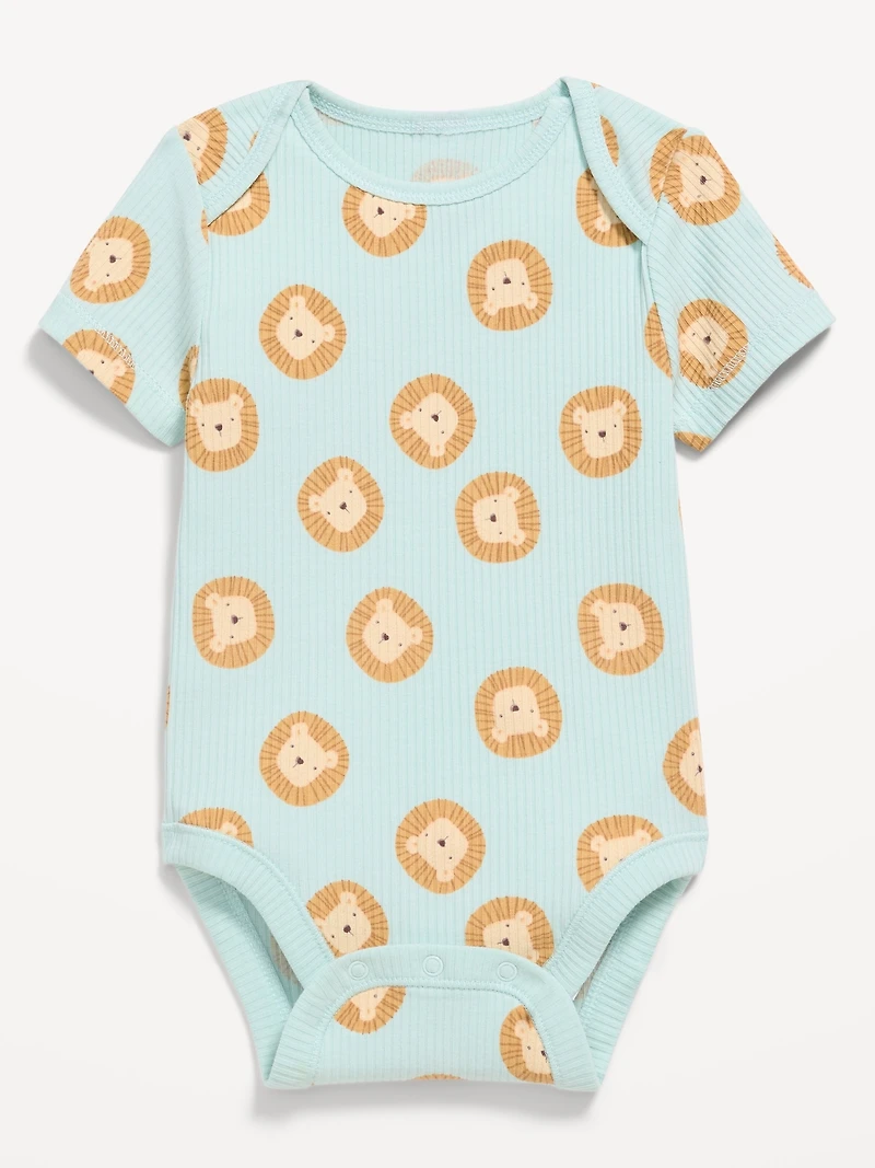 Printed Short-Sleeve Ribbed Bodysuit for Baby