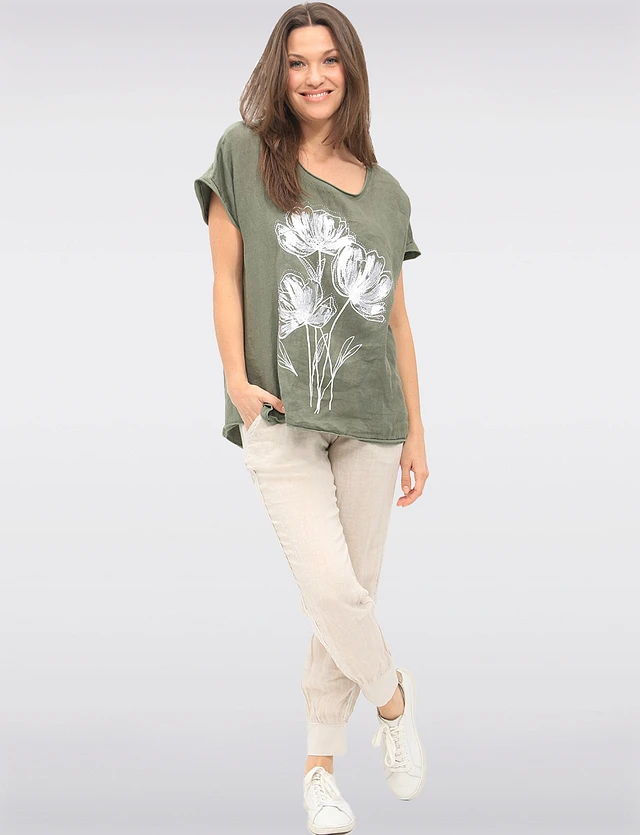 Pull-On Linen Pants with Cuffed Hem and Metallic Tape Detail by Froccella