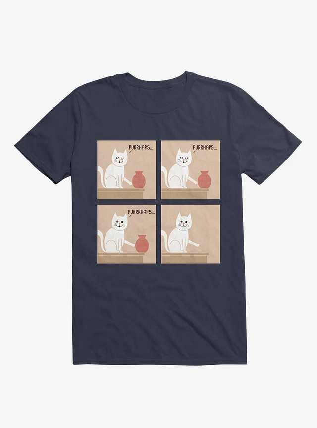 Purrhaps... Mischievous Cat Navy Blue T-Shirt