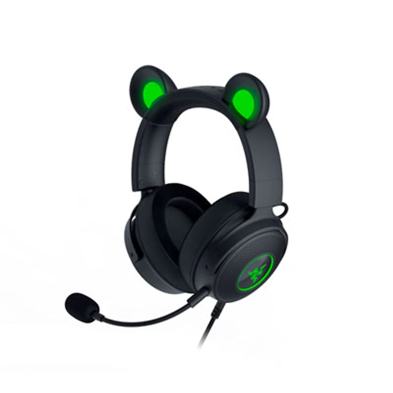 Enhance your stream persona with the Razer Kitty V2 Pro gaming headphones. They come with interchangeable kitty, bear, and bunny ears that snap on easily to the headband for effortless style changes. You can also sync the headset to your stream to engage your audience with stream-reactive earcup lighting effects. | Razer Kitty V2 Pro Gaming Headphones with Microphone - Black