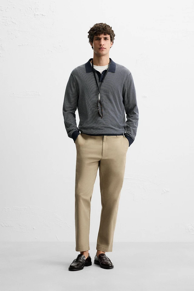 PLEATED WIDE FIT DENIM CHINO PANTS