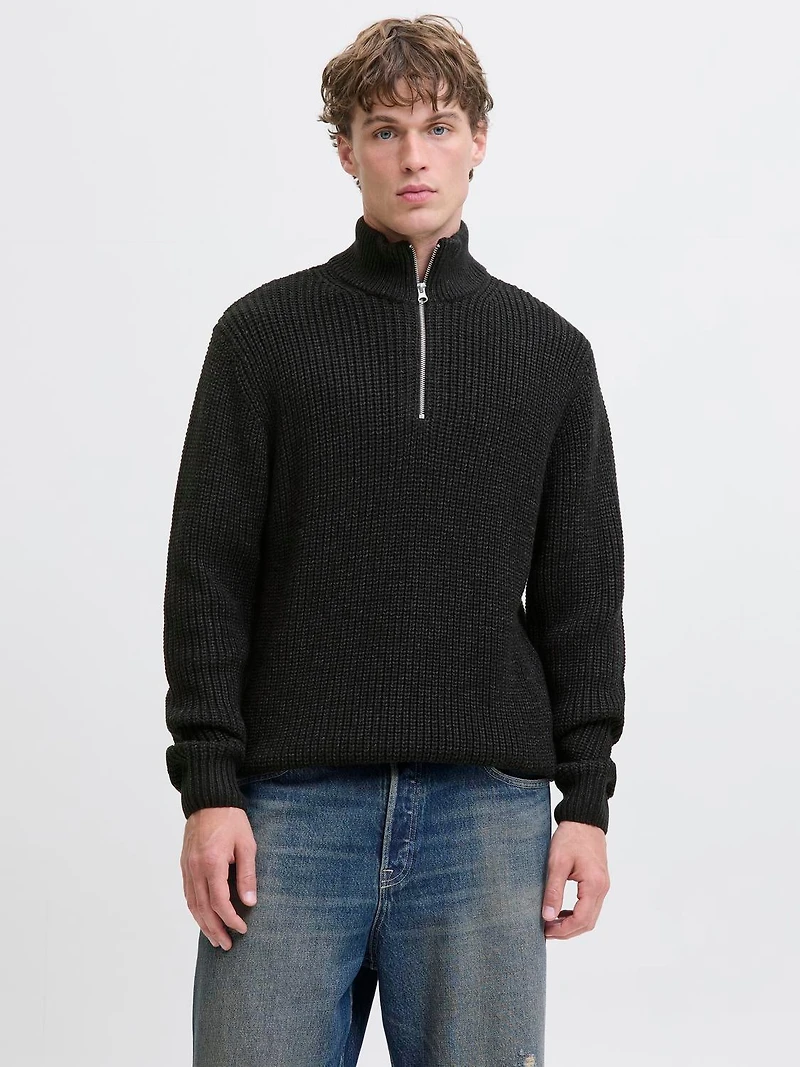 This is the type of laid-back knit you can wear on the weekend with jeans as well as over a shirt and pants at the office. Flat knit is a knitted fabric with comfort and flexibility. - Product Type : Sweater - Neck : High neck - Sleeve : Long sleeves - Cuffs : Ribbed cuffs - Closure : Half zip fastening - Fit : Regular Fit