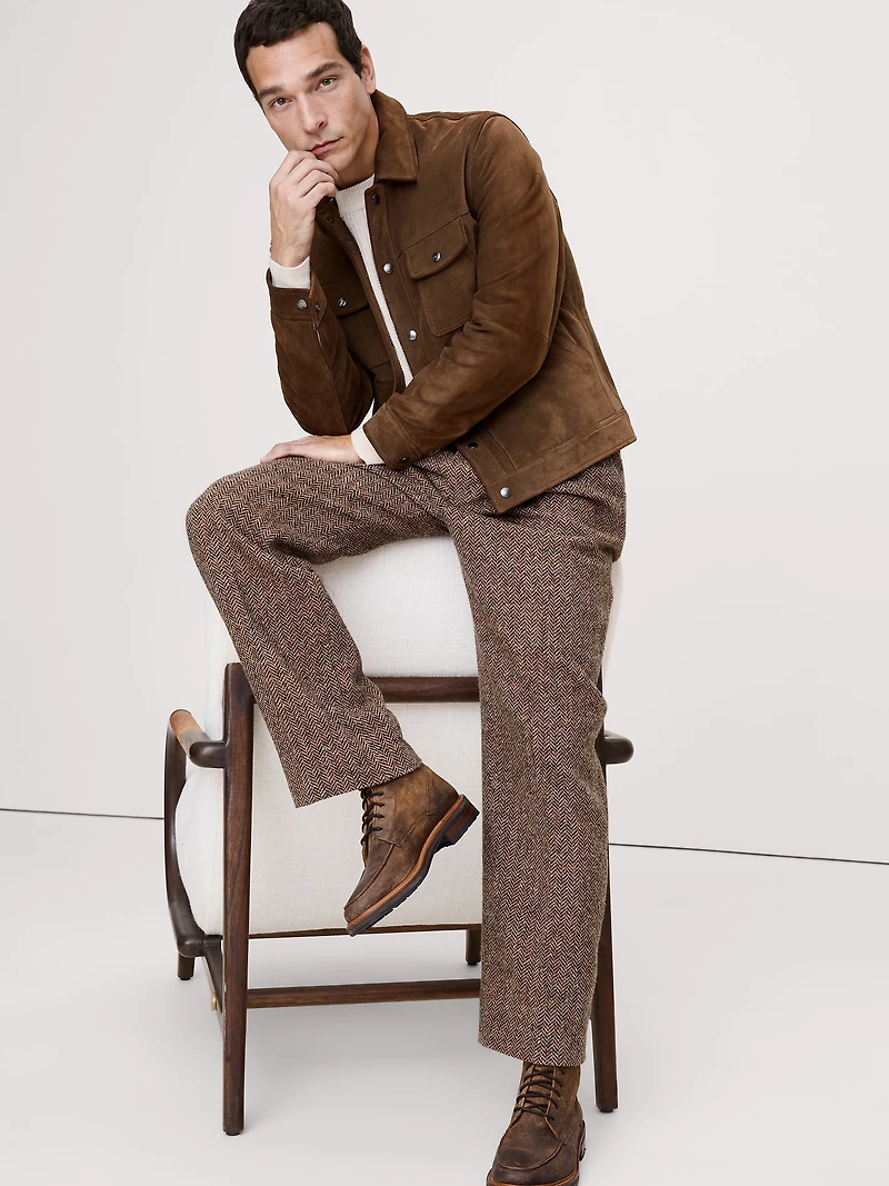 We set out to create a pair of dress pants that feel like the best vintage piece, only better. For fabric, a warm and soft wool-blend herringbone fabric from Italy. Relaxed Fit: Mid-rise. Relaxed fit through hip, thigh and a straight leg. Fabric from Italy's Lanificio Fratelli Balli. Zip fly with hook-and-bar closure. Front and back crease. Belt loops and after-dinner split detail at back. Front pockets. Back pockets with button closure. Unlined.