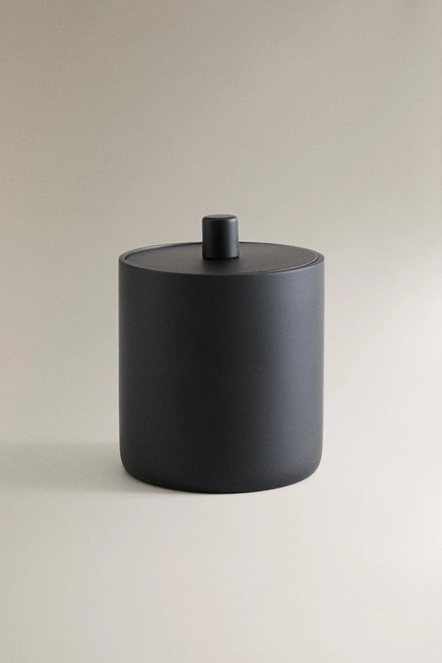 BLACK RESIN BATHROOM ORGANIZER JAR WITH LID