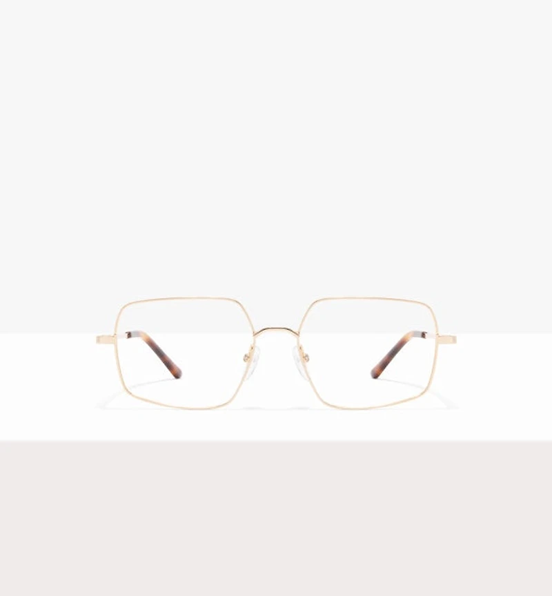 A uniquely designed angular frame made of lightweight metal. It is equipped with adjustable nose pads, and can be fitted with blue light protection lenses. Try it online with our virtual tool!