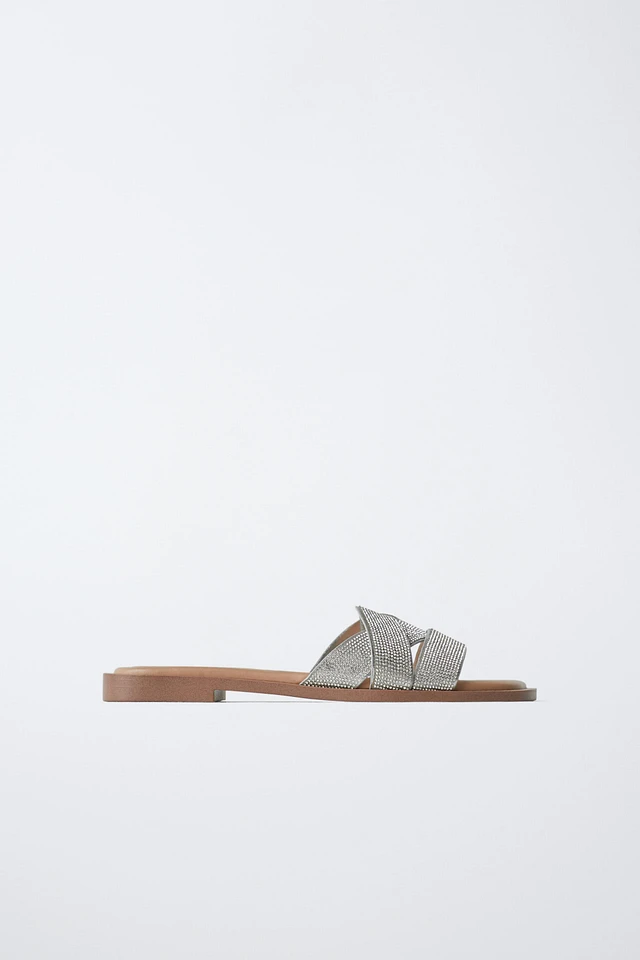 FLAT SANDALS WITH STRAPS AND METAL DETAIL