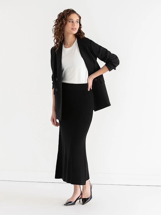 Long ribbed knit skirt