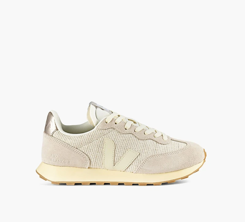 Step into sustainability with the Rio Branco II sneakers by VEJA. Crafted from 100% recycled polyester, these sneakers offer breathability, flexibility, and lightness. The panels are made from suede, while the insole combines Amazonian rubber, bio-based E.V.A., recycled E.V.A., and organic cotton for superior comfort. Perfect for eco-conscious individuals, these sneakers are made in Brazil and feature a durable outsole for long-lasting wear.