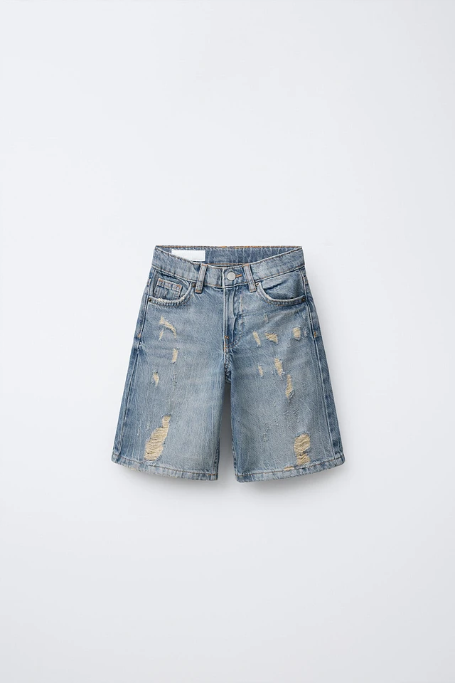 MID-RISE RIPPED TRF DENIM SHORTS
