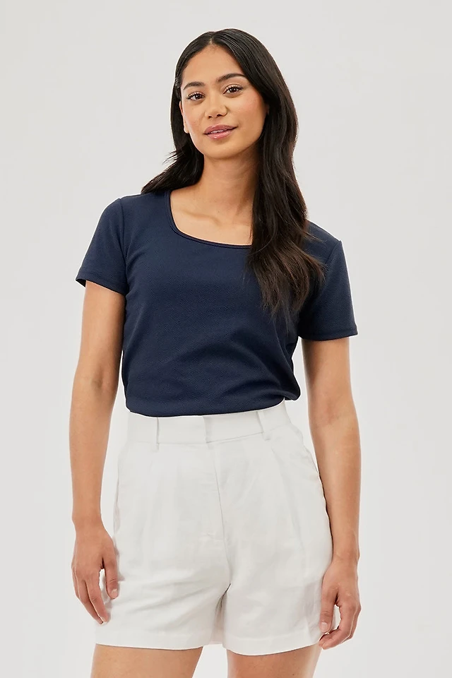 Ribbed Square Neck Tee - Wimbledon Stripe