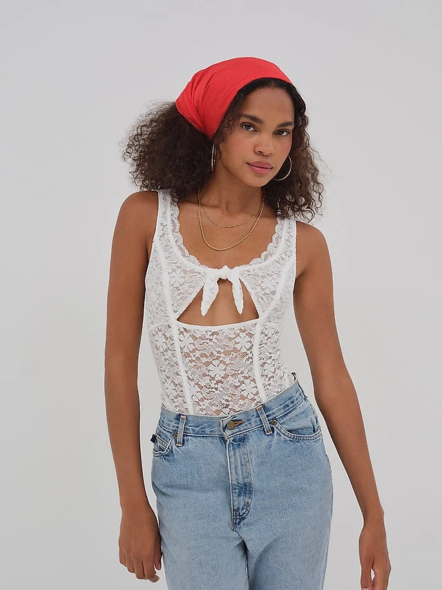 Lace Plunge Teddy with Satin Bows