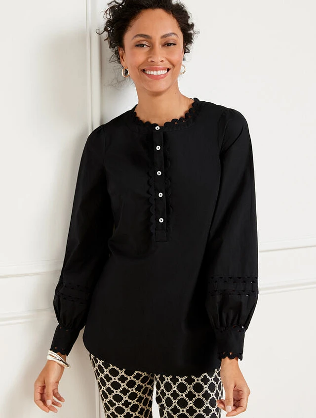 Scallop Detail Poplin Top