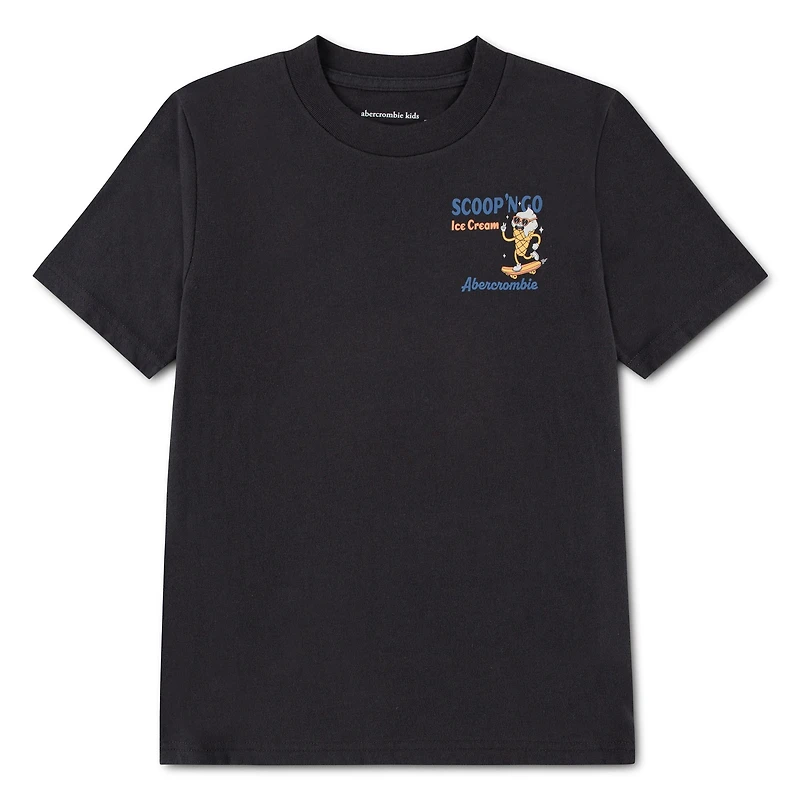 Featuring ice cream parlor inspired graphics, this standard fit tee from abercrombie kids is a wardrobe staple crafted of cotton/poly jersey with a tagless crewneck for fuss-free wear that adds to the comfy fit.