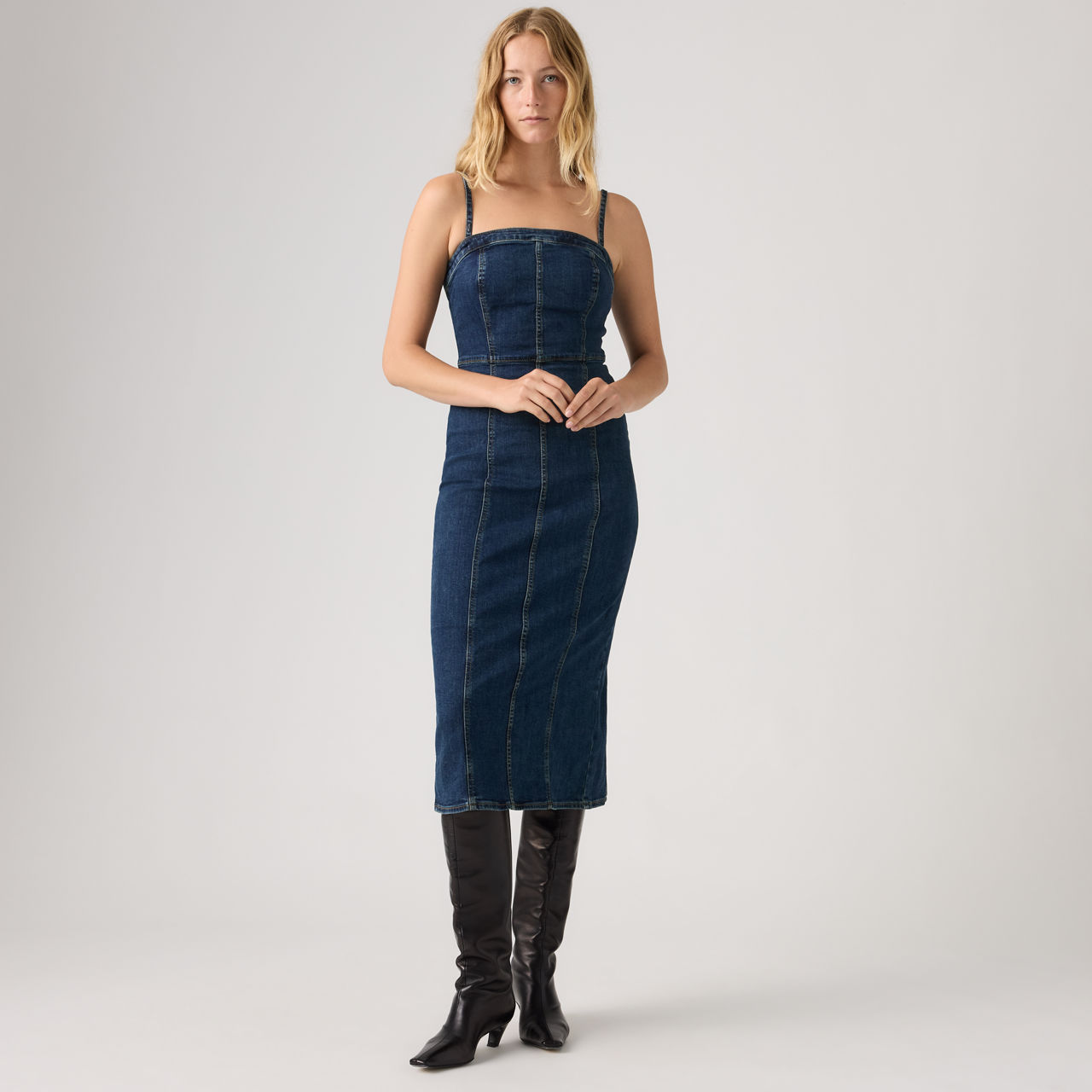 Our Seamed Bustier Dress is the definition of all-in-one style—with no fuss. We designed it with removable straps, corset-inspired boning and a straight leg cut.