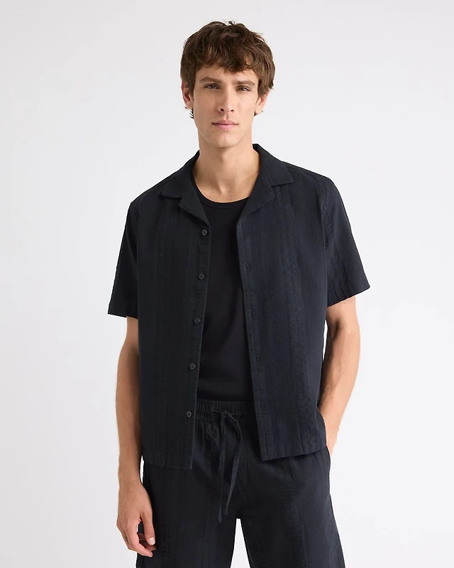 Seersucker Short-Sleeve Shirt with Camp Collar
