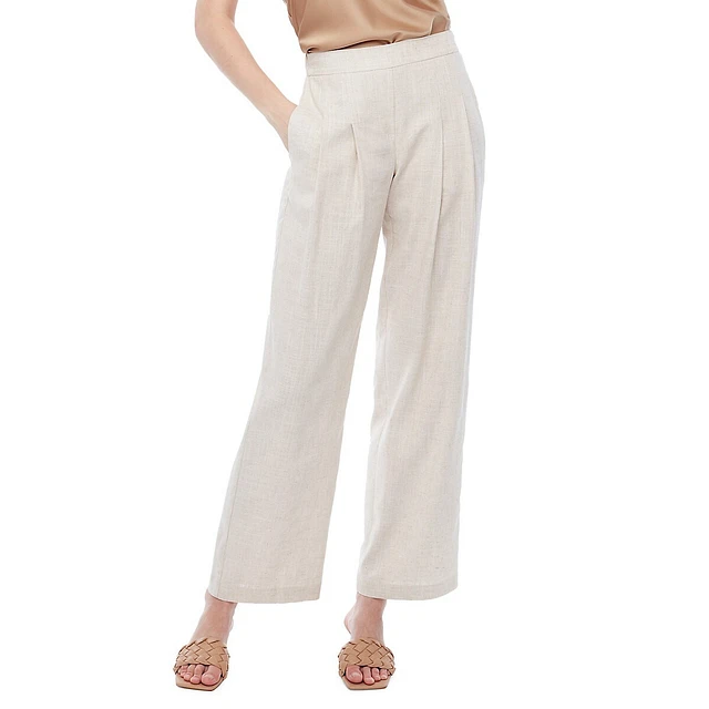 Relaxed Fit Wide-Leg Cotton-Linen Pants with Stretch Waistband by Froccella