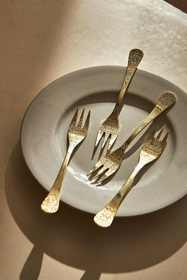 SET OF GOLD STEEL BRUNCH DESSERT FORKS (SET OF 4)