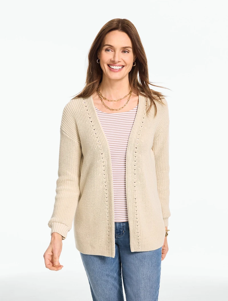Shaker Stitch Open Front Cardigan