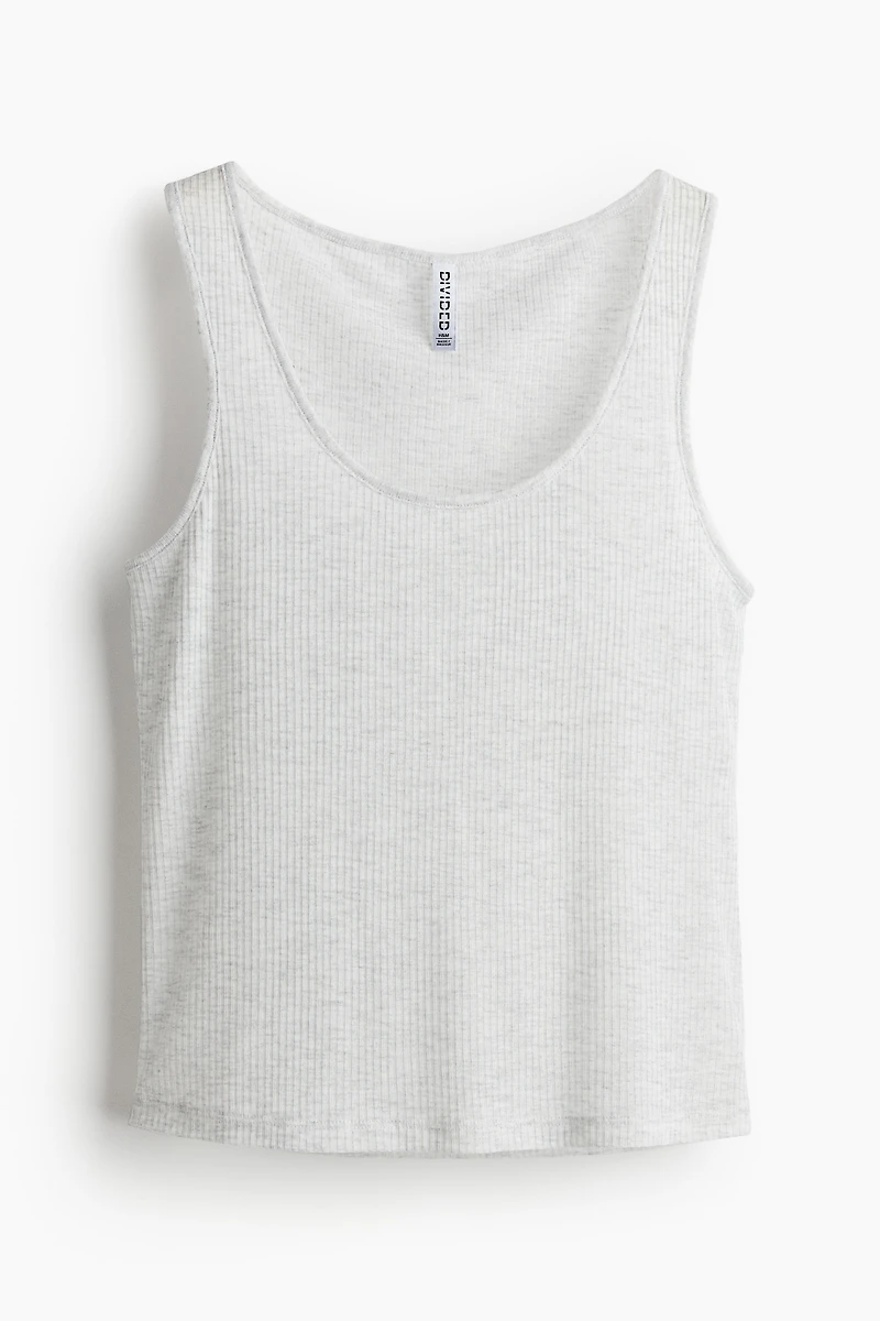 Short, fitted tank top in sheer, ribbed jersey. Scoop neck at front and a straight-cut hem.