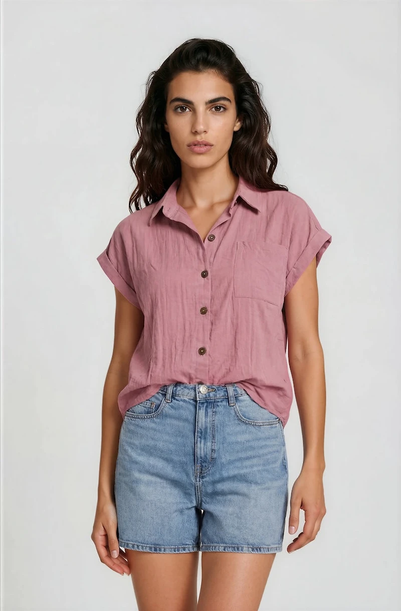 Short Sleeve Button Up Shirt - Purple