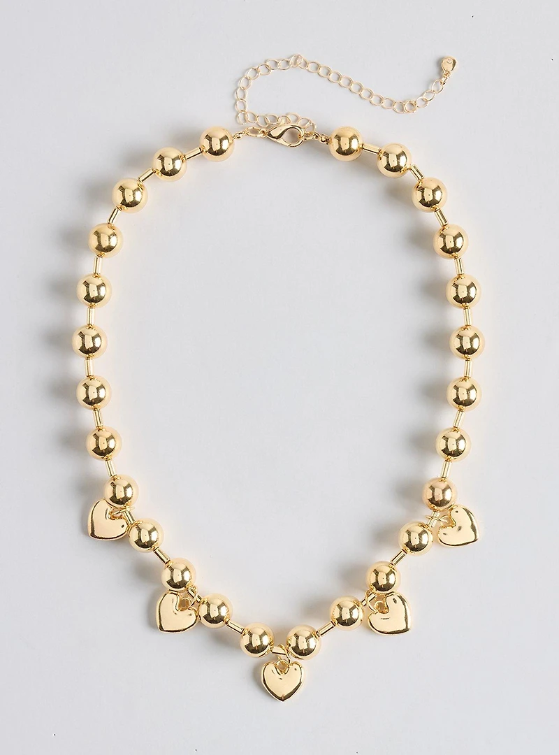 MATERIALS + CARE Base metal. Wipe clean with cloth. Imported. DETAILS High shine finish. Bead design with heart accents.