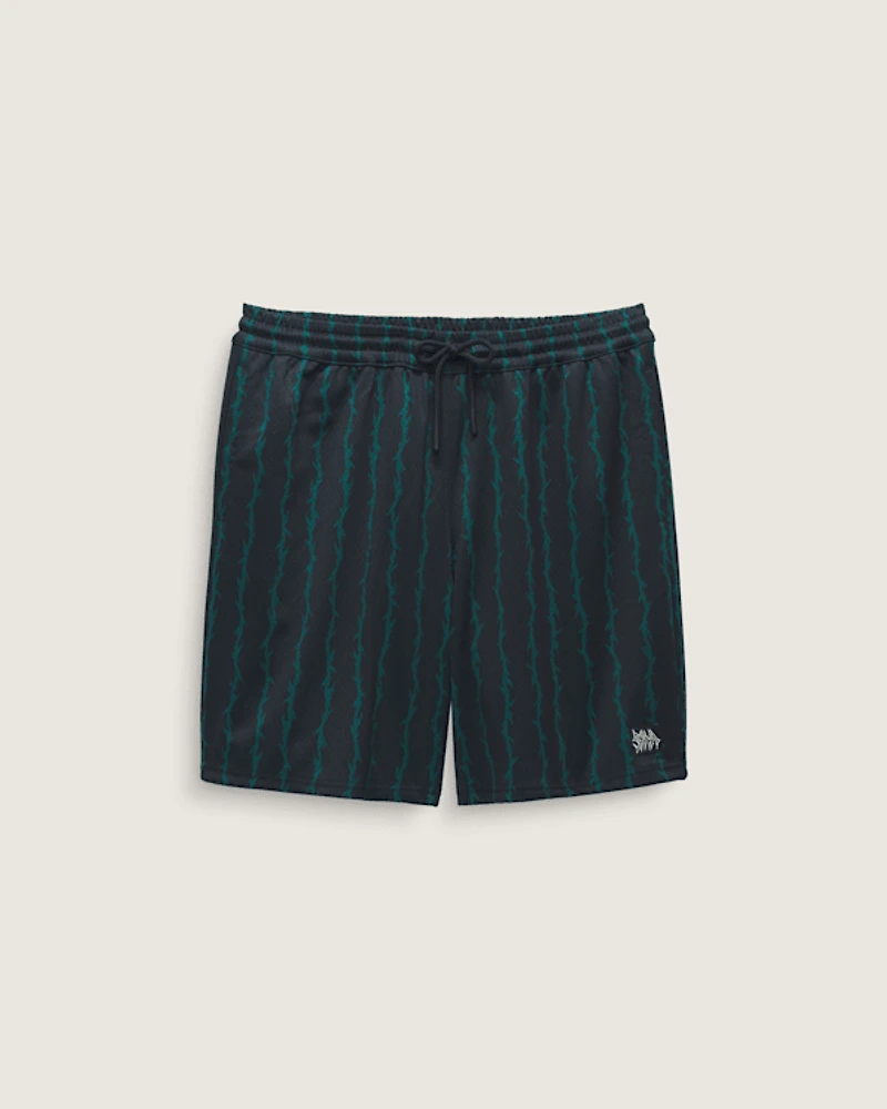 Durable and comfortable with a streetwear edge, the Skate Loose 20'' Sport Shorts are built for the skate park and beyond with a loose fit for easy movement. Made of mesh with a tricot warp-knit fabric to help retain shape, thy also feature an elastic waist with a drawcord, plenty of pockets, eye-catching Vans® details including our skateboarding label package, with sublimated allover graphics of thorns to finish the look.