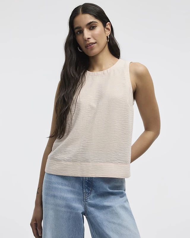 Sleeveless Crew-Neck Ribbed Buttoned-Down Top