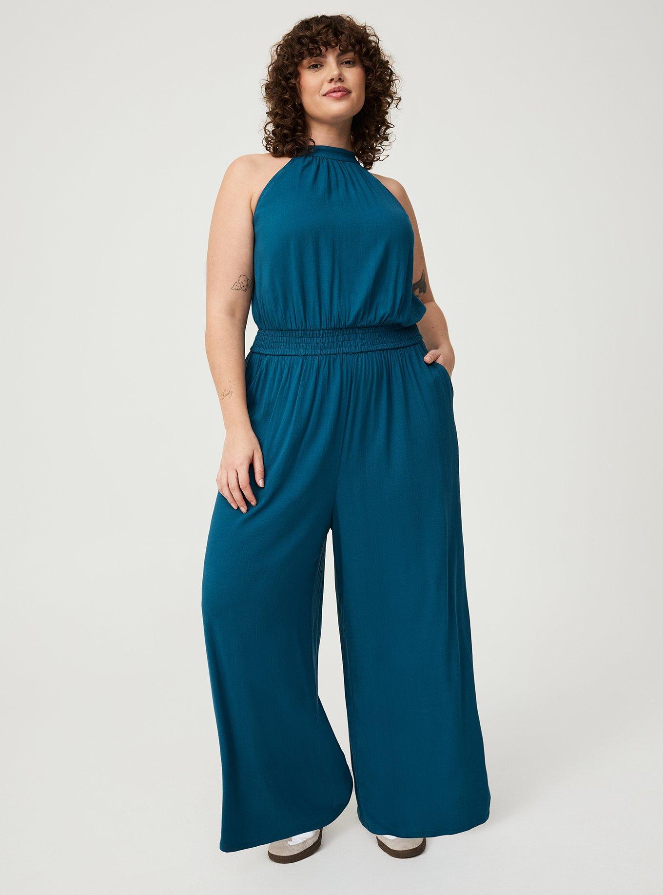 FIT Measures 56"" from shoulder (size 2). MATERIALS + CARE Rayon Slub woven fabric: A soft, linen-like feel that drapes perfectly on the body with a touch of stretch. Perfect for when you want to be polished but comfy at the same time. Stretch level: Medium. 99% rayon, 1% spandex. Machine wash cold. Line dry. Imported. DETAILS . Halter neckline. Sleeveless. Wide leg. Functional pockets.