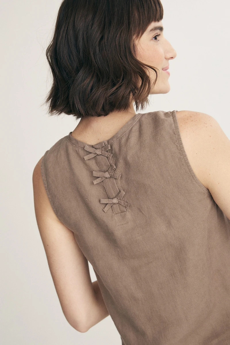 This sleeveless linen top offers a relaxed elegance with refined style, perfect for effortless summer layers. Crafted for a breathable, loose fit, it’s an ideal addition to any wardrobe.