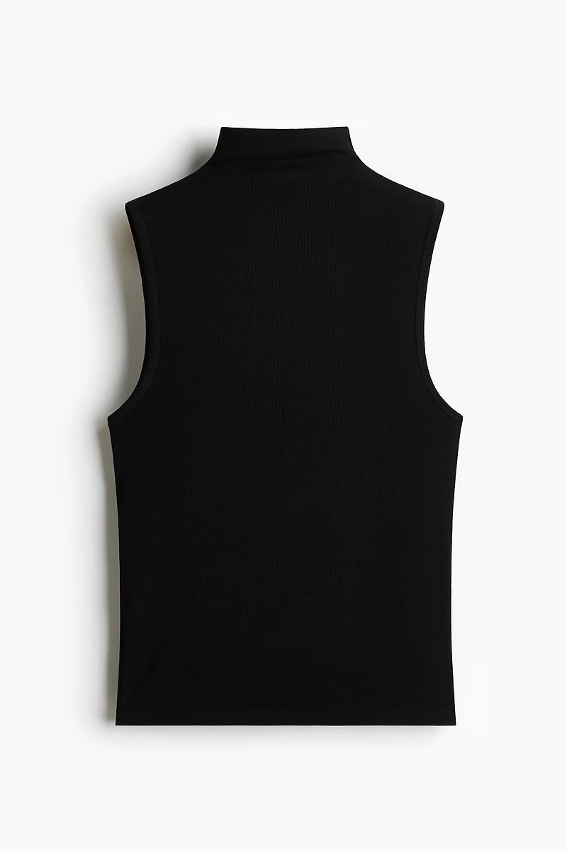 Short, sleeveless top in a soft, fine knit with a mock turtleneck and straight-cut hem.