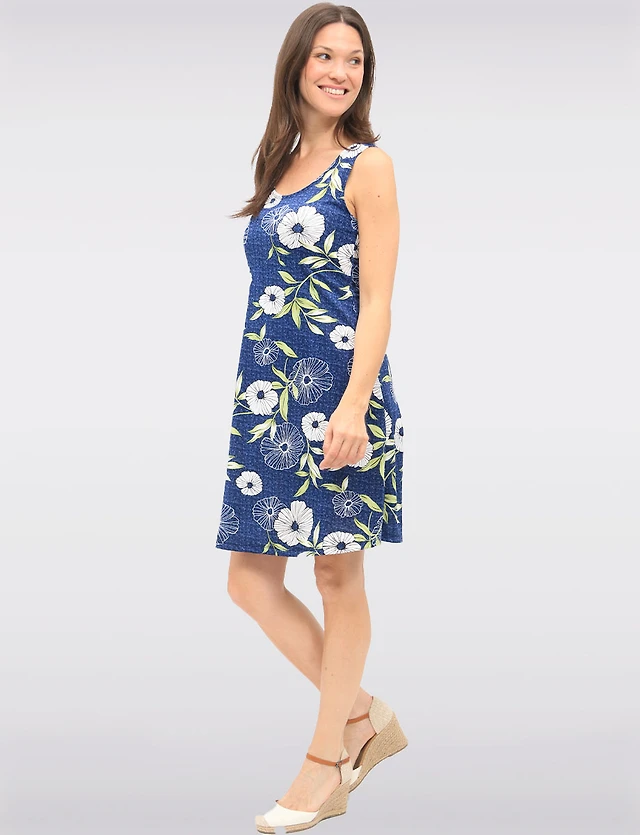 Sleeveless Stretch Denim Floral Printed Scoop Neck Dress by Amani Couture