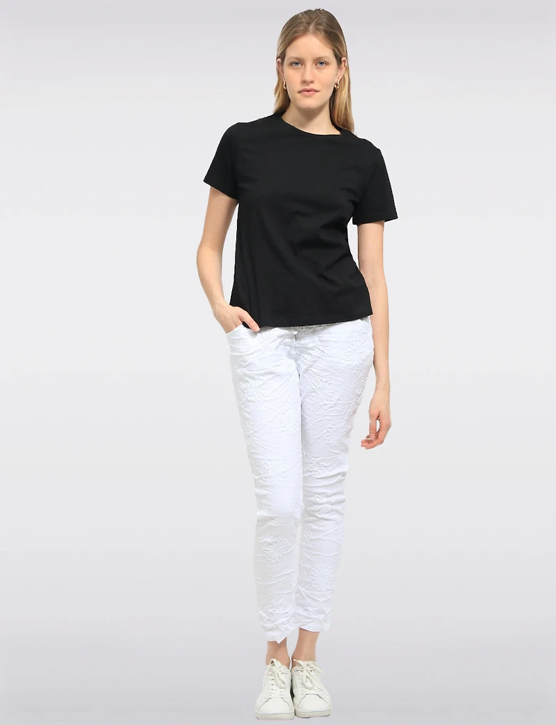 Slim Fit Chic Crinkled Pull-On Pants with Embroidered Front Detail by Froccella in Ottawa, ON