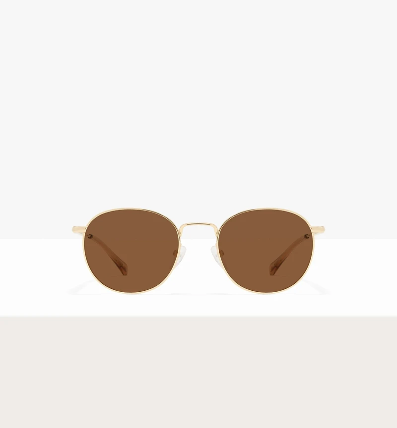 Delicate and retro. A fine, luminous round metal frame for a look defined by subtlety. Polarized lenses included without prescription.