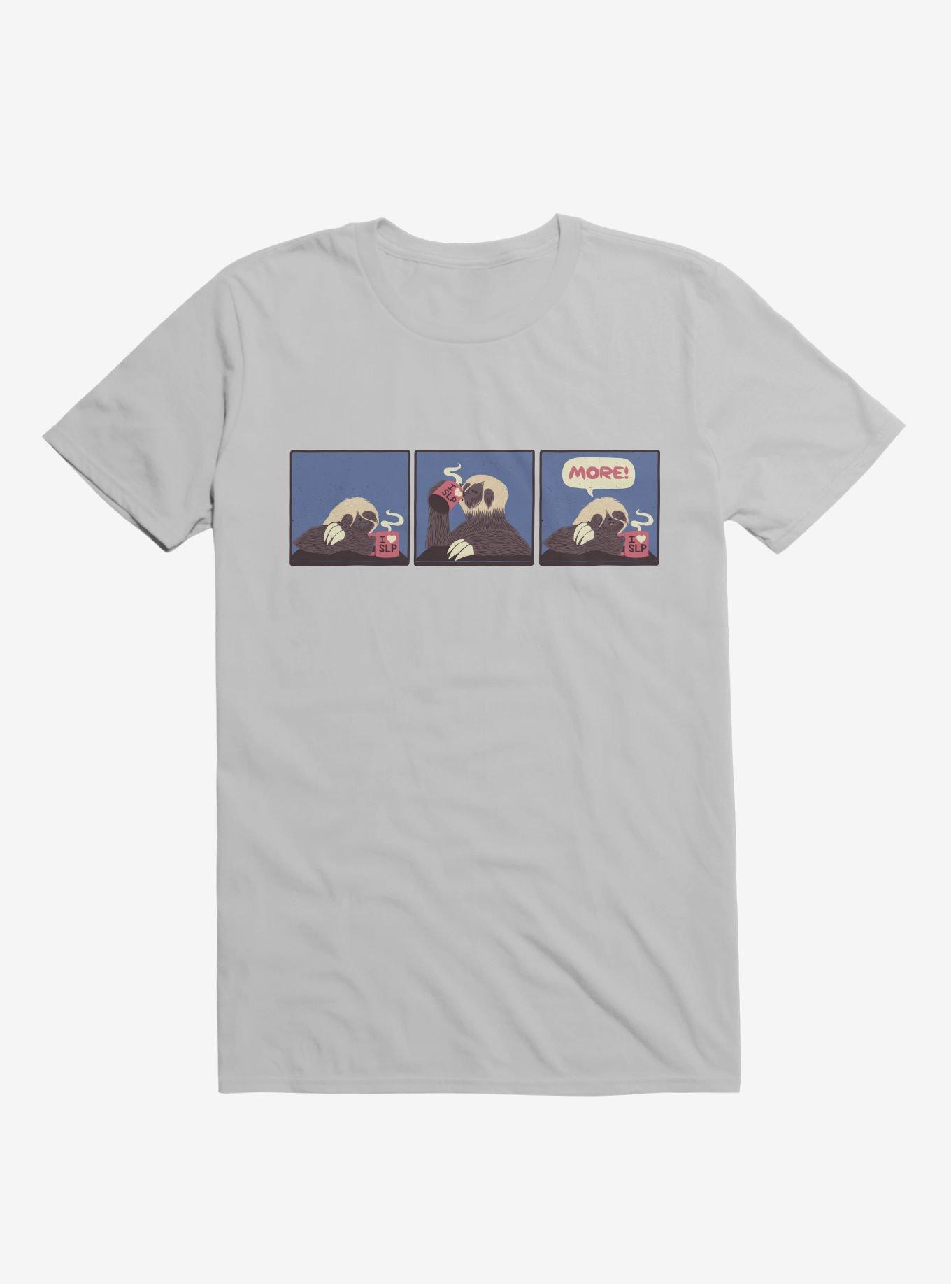 Sloth Coffee More! Comic Ice Grey T-Shirt