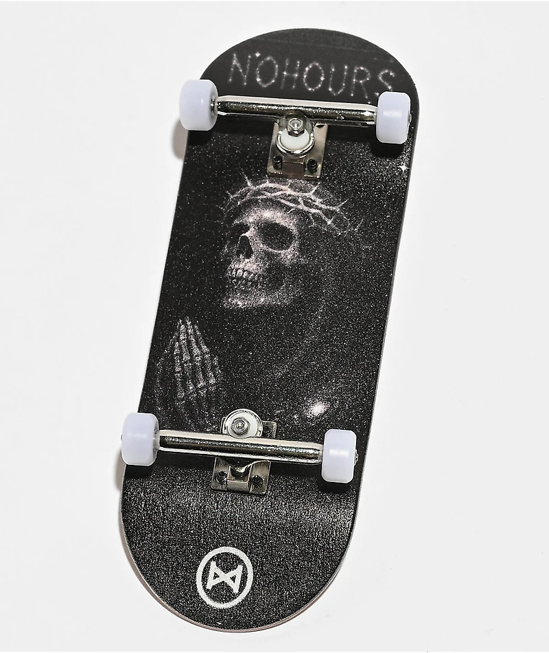 Fully constructed and ready for a session upon delivery, Slushcult and NoHours join forces to introduce the Star Dust fingerboard complete with high-quality, reliable parts already attached. Boasting a deathly image of a skeleton panamiming a prayer