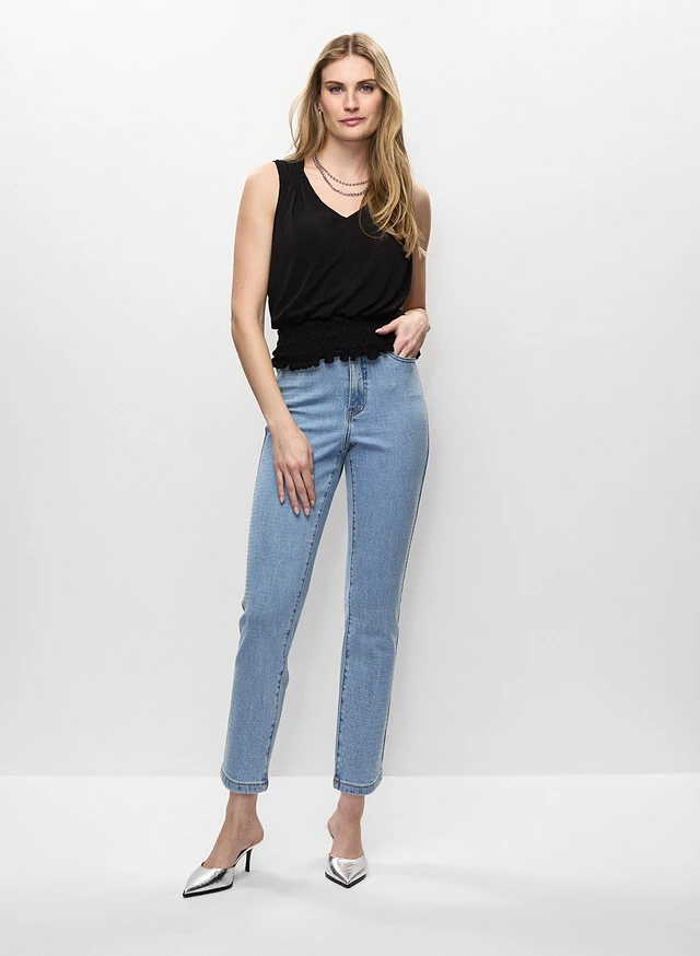 Floral Print Wool-Blend Knit Top with Foil and Rhinestone Detail by Froccella