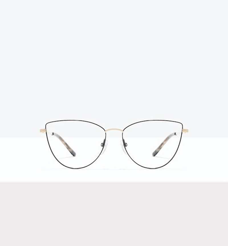 Stylish cat-eye metal frames with adjustable nose pads and acetate temple tips for extra comfort. Also available with blue light protection and for virtual try-on.