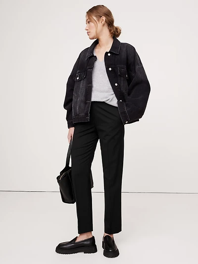 High-Rise Slim Italian Lightweight Wool Ankle Pant