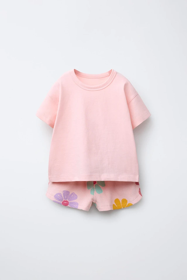 SOLID T-SHIRT AND WAFFLE BERMUDA SHORTS SET