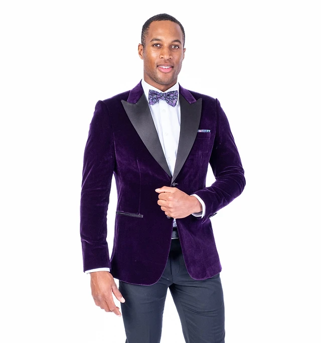 Solid Velvet Peak Lapel Blazer - Dark Purple