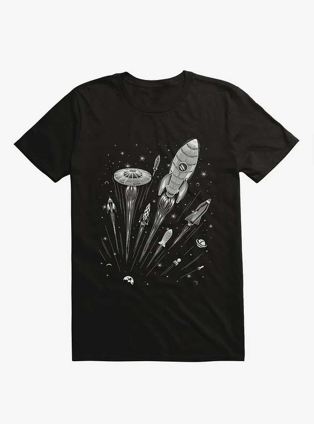 Space Race Spacecraft Black T-Shirt