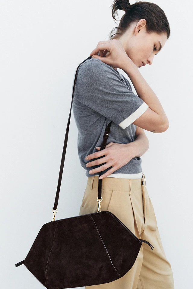 SPLIT LEATHER TOPSTITCH CLUTCH