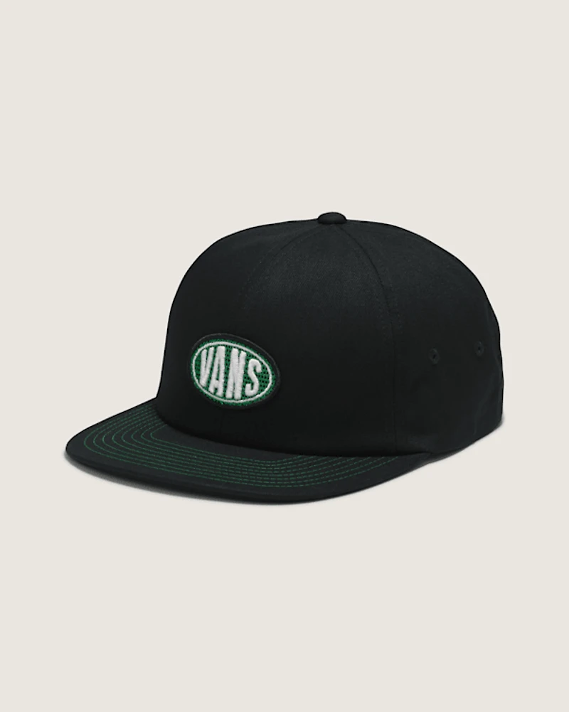 Lightweight with a longer visor, the Spray Jockey Hat is a 6-panel cap in a classic jockey silhouette made of durable woven cotton. Style details include contrast stitching at the bill and an embroidered mesh patch with a bold Vans® logo.