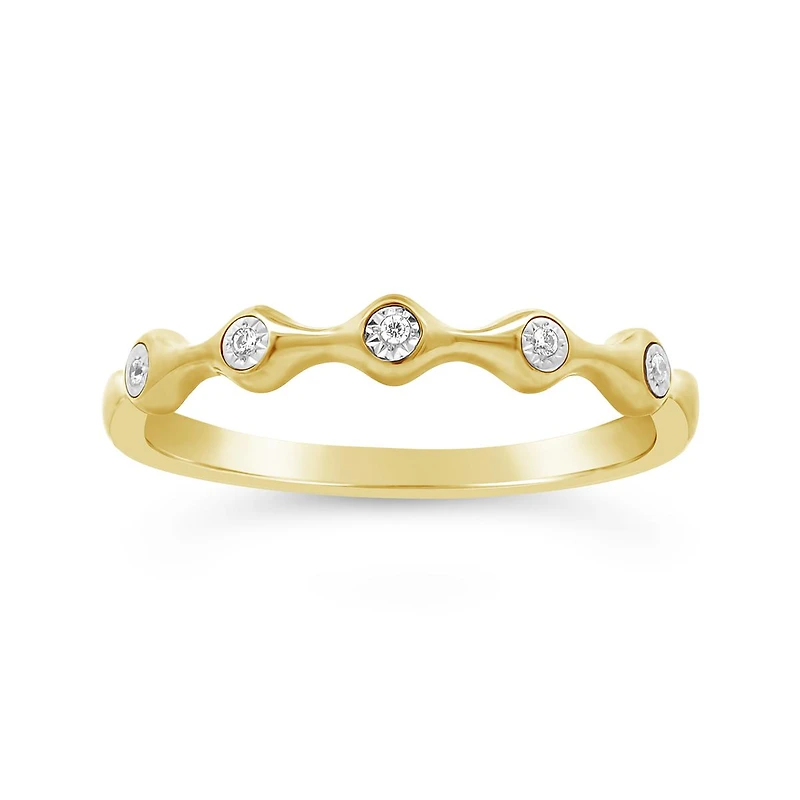 Add a touch of luxury to your collection with this stackable diamond ring in 10K yellow gold, designed to offer effortless elegance and sparkle, whether worn alone or stacked.