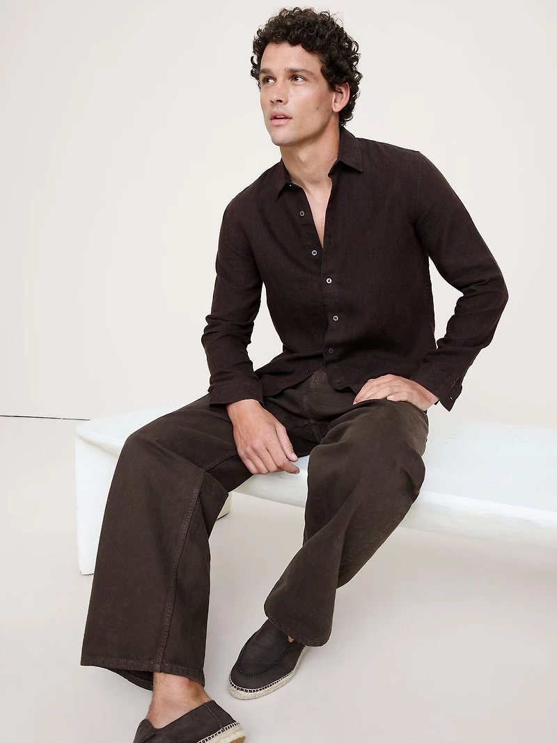 Things we love about this 100% linen: the rich color, the already-loved softness and how it stays breathable even in heat and humidity. Here, we kept the fit easy and opted for a classic point collar. Standard Fit: A straight and easy fit. Point collar with button front. Shirttail hem.