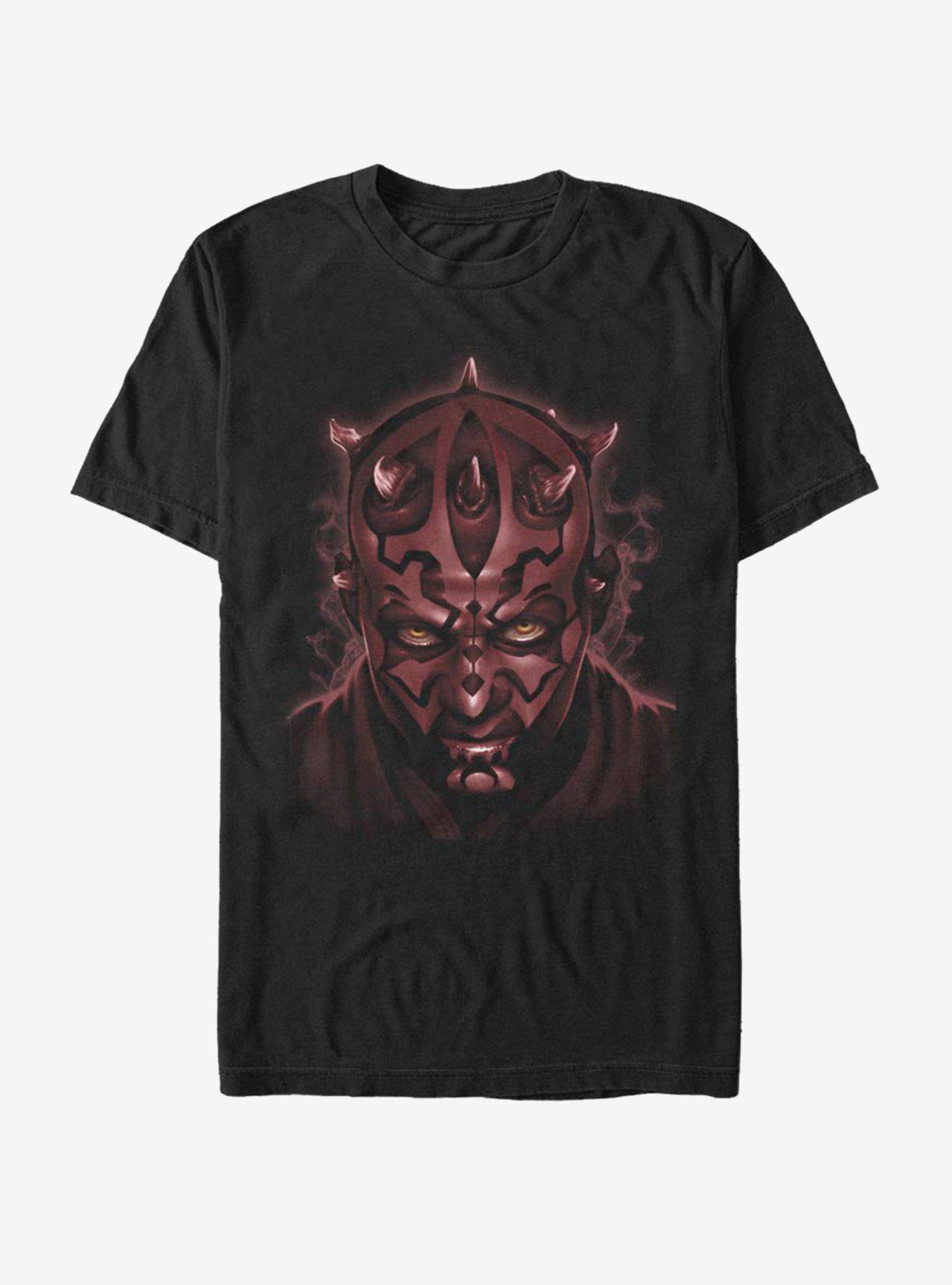 Revenge. I must have revenge. This black Star Wars tee features a close-up of the deadly Darth Maul.
