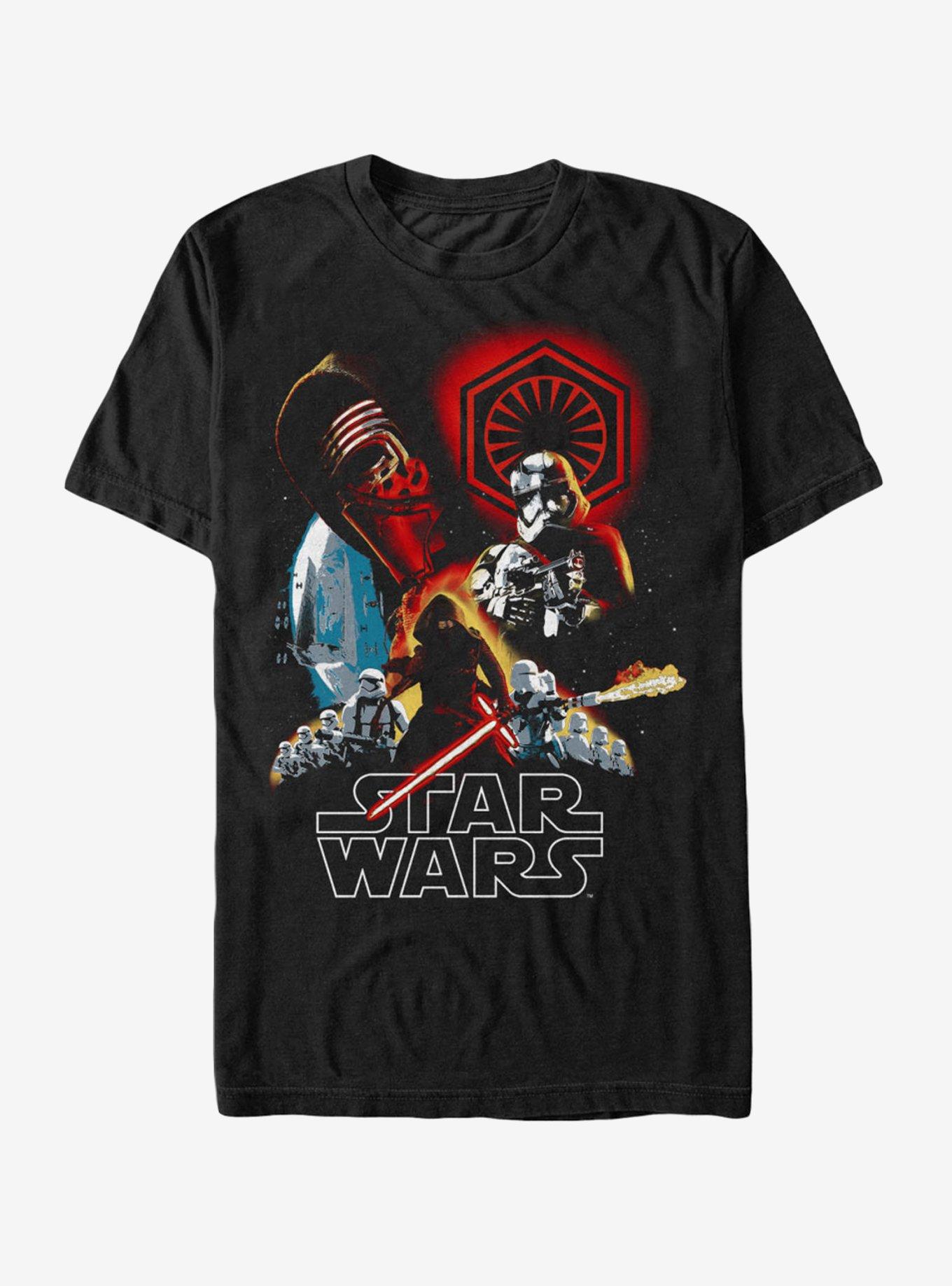 Feel the power of the dark side with the Star Wars First Order Art Black T-Shirt. Kylo Ren, Captain Phasma, Stormtroopers, and Flametroopers are all printed below the First Order logo on the front of this awesome black Star Wars Episode 7 T-shirt. 100% Cotton.